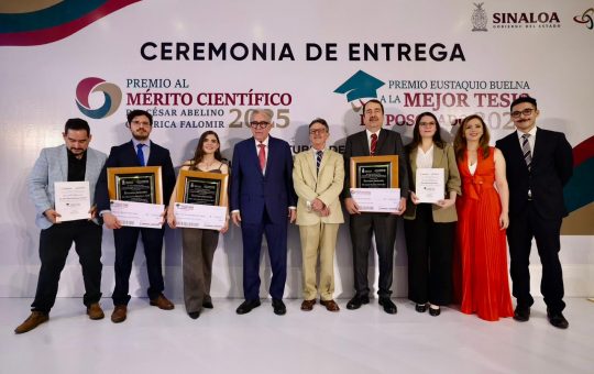Culiacán, Sinaloa, a 9 de octubre de 2025.- Al hacer la entrega del Premio al Mérito Científico “Dr. “César Abelino...