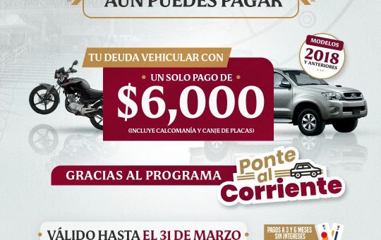GOBIERNO DEL ESTADO SE EXTIENDE EL PROGRAMA “PONTE AL CORRIENTE” HASTA EL 31 DE MARZO enero 31, 2026 Editorial