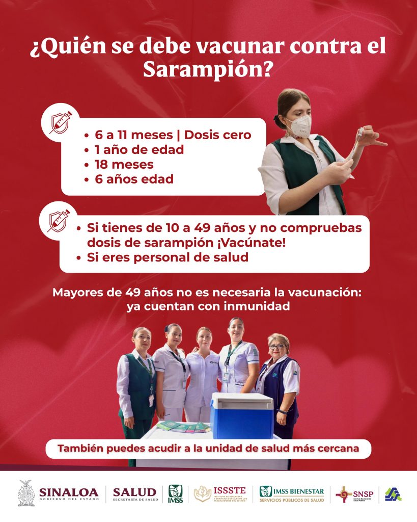 La jornada de vacunación está dirigida a niñas y niños de 6 a 11 meses, de 1 año, 18 meses y 6 años de edad, así como a personas de entre 10 y 49 años que no cuenten con comprobante de vacunación, además del personal de salud.
