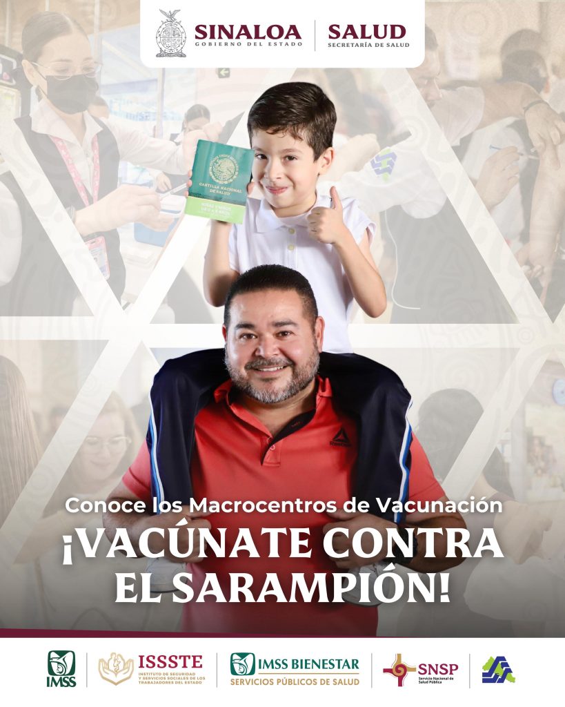 Culiacán, Sinaloa.- La Secretaría de Salud informa a la población que, con el objetivo de fortalecer la protección contra el sarampión, se instalarán macrocentros de vacunación en distintos municipios del estado durante esta semana.